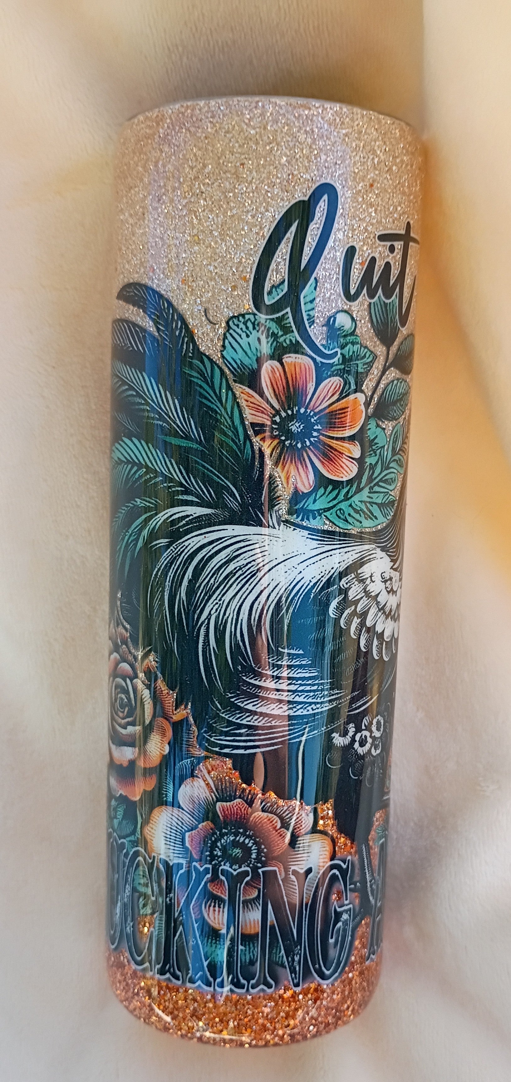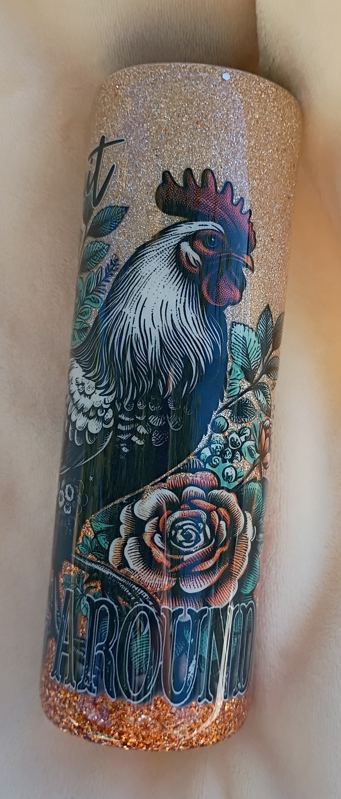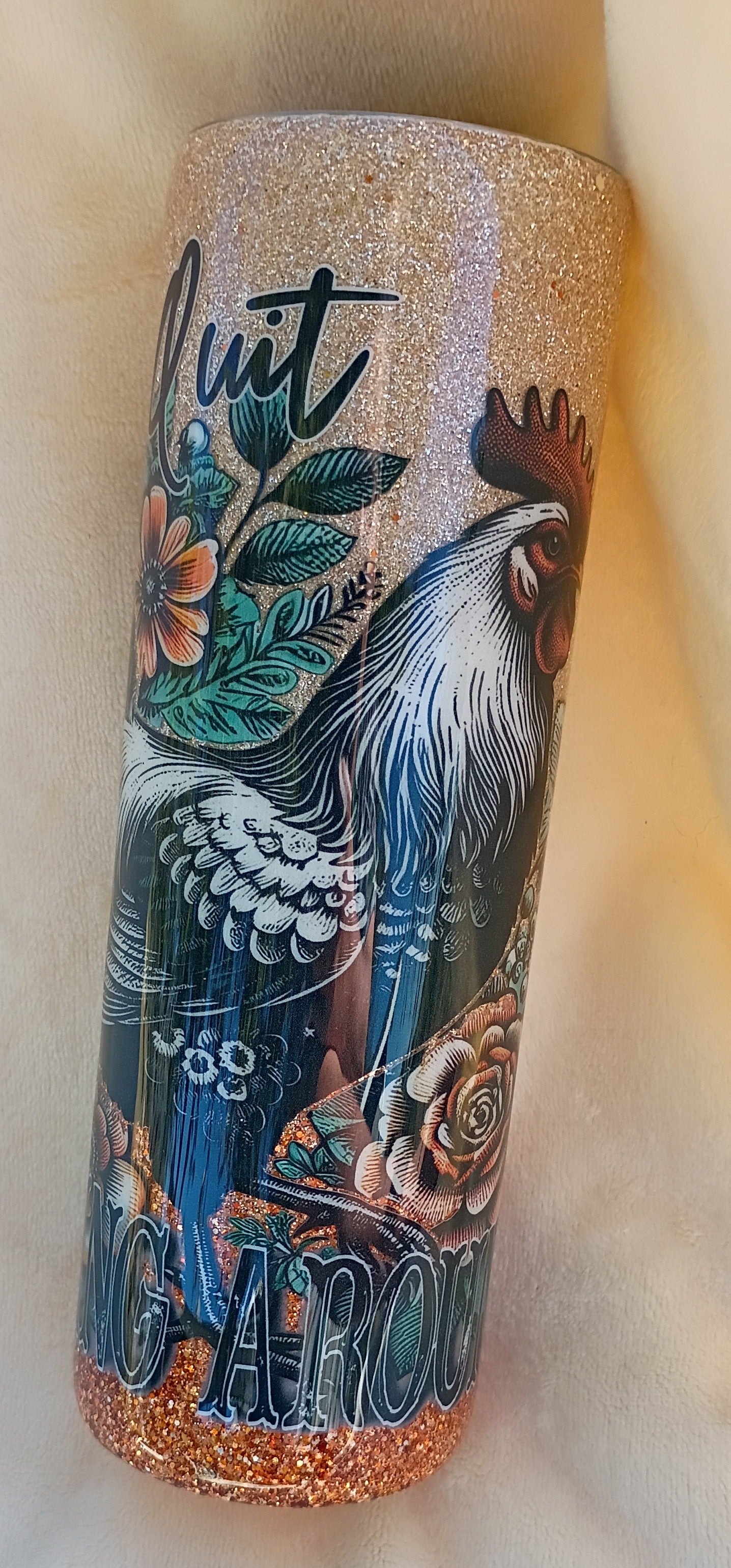 Get ready to strut your stuff with this Quit Cluckin’ Around Tumbler — the perfect mix of sass, sparkle, and farmyard fun!